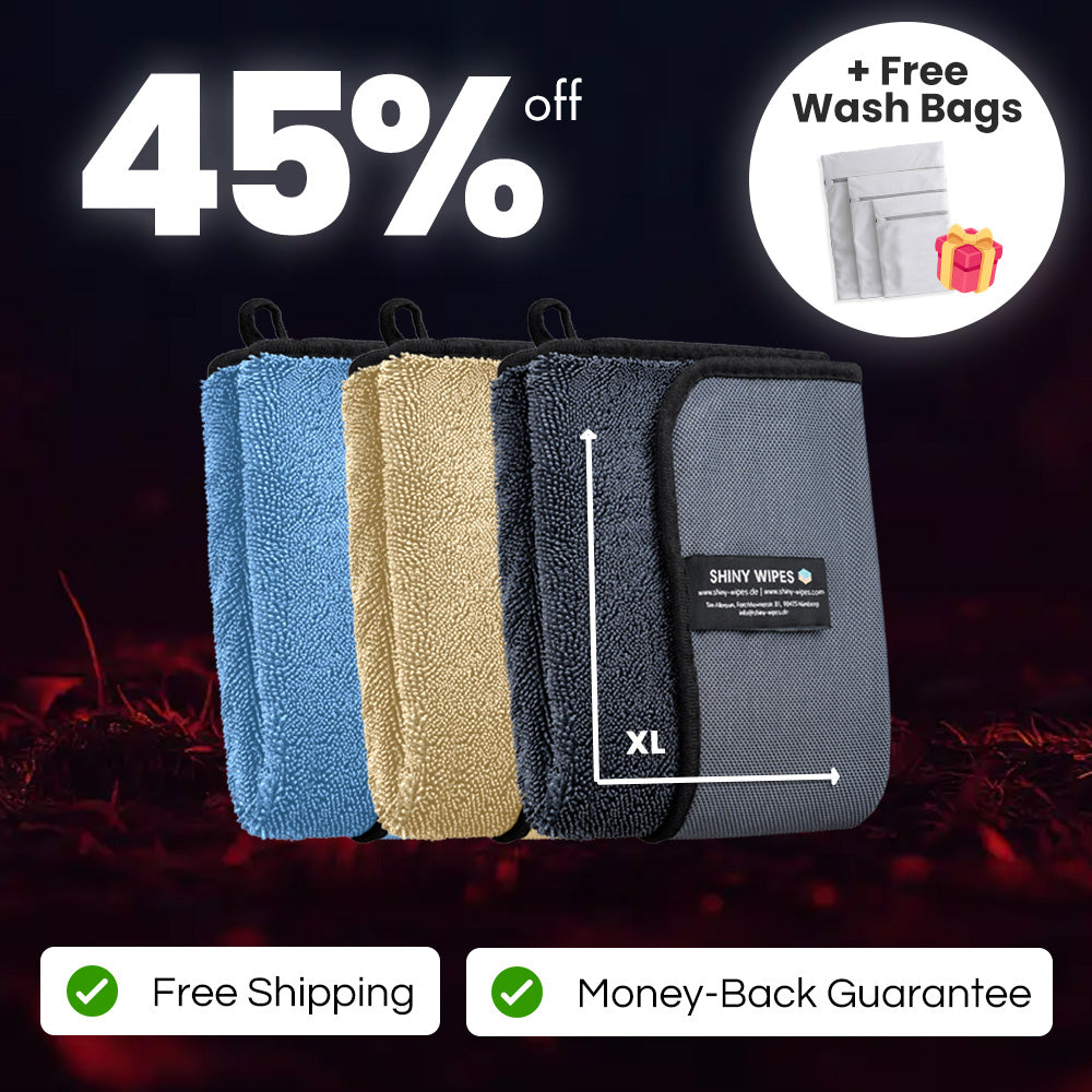 Why choose one when you can have all three? This bundle includes our bestselling Shiny Bath™ Drying Towel in grey, blue, and beige - so you always have a fresh one on hand. Get 45% off compared to buying individually, plus enjoy free shipping, a 30-day money-back guarantee, and a free set of washing bags to keep your towels in perfect condition.