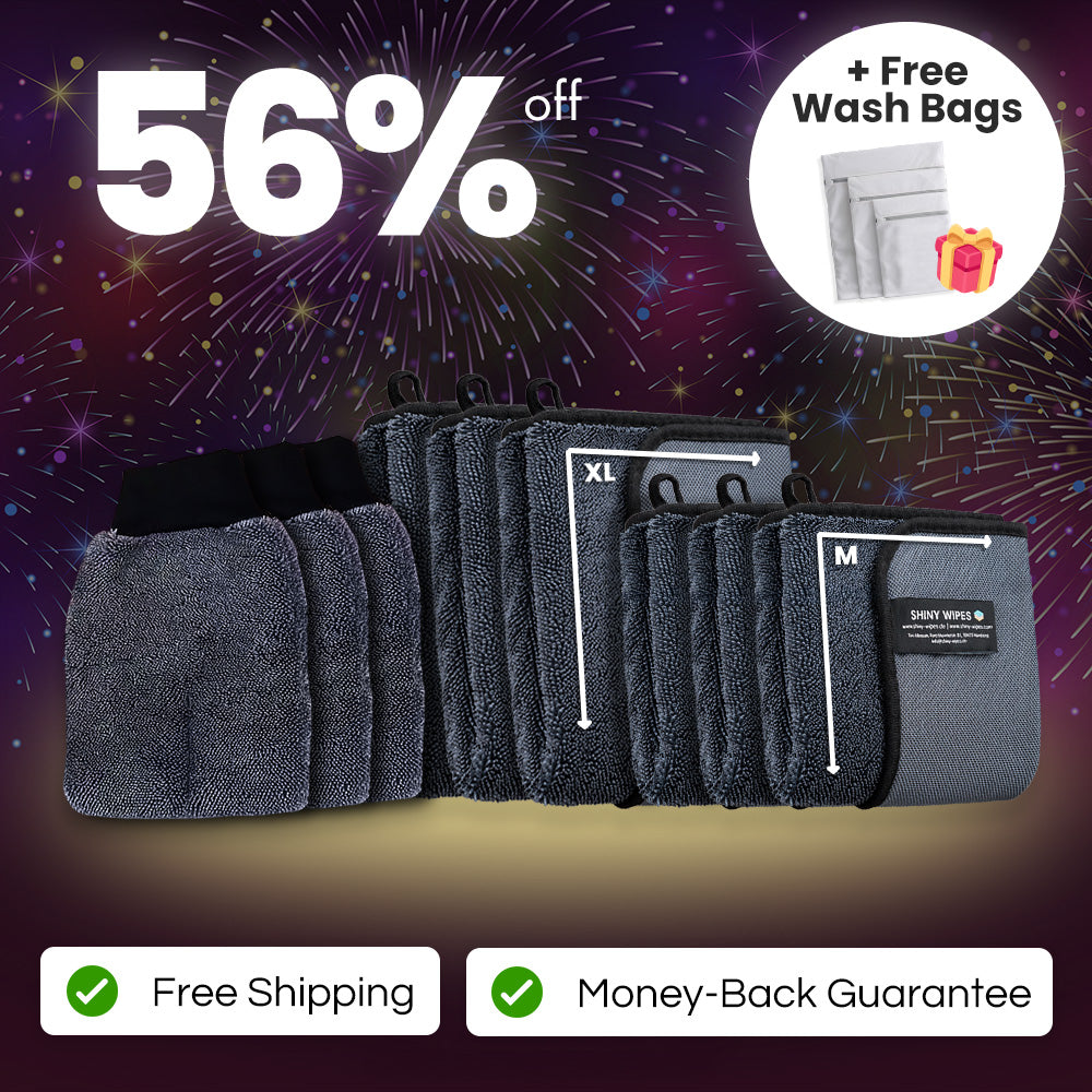 Everything you need to dry every surface in your home quickly, effectively, and streak-free. The Complete Drying Bundle includes 3 Shiny Bath™ XL Drying Towels, 3 Medium Drying Towels, and 3 Shiny Glove™ Cleaning Gloves. Ideal for every size surface and every cleaning task. Save 56% compared to buying separately, and enjoy free shipping, a 30-day money-back guarantee, and a free set of washing bags to care for your cloths and gloves.